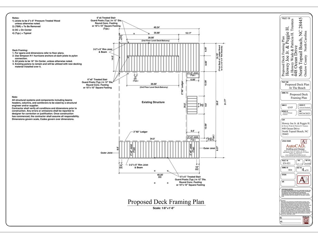 Cover Sheet for the Proposed Deck Project for clients Joe Howey, Jr., and Patricia Wade.